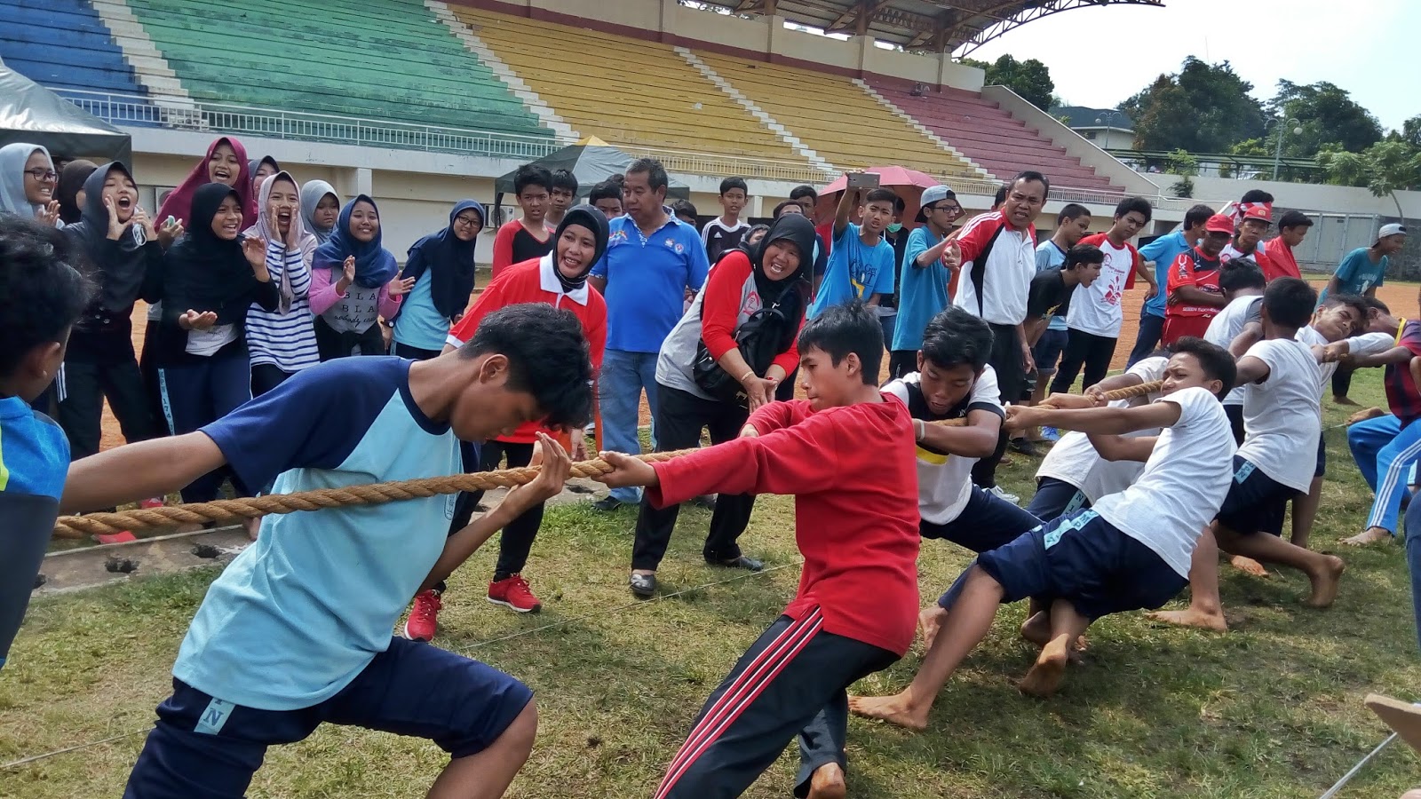 Keseruan para peserta saat bermain tarik tambang |