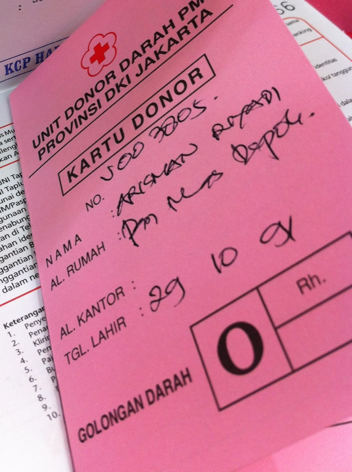 Tips diatas bermanfaat banget loh, karena pas jarum menampakan ujungnya dimata saya, rasa ngilu sudah mulai muncul, dan pas di tusuk...... "tarik nafas" ujar petugasnya. Dan memasuki tahap akhir, sample darah diambil plus rasa bangga hadir ketika kantong darah saya terisi sambil digoyang-goyangkan (penasaran? coba deh), semoga bermanfaat !