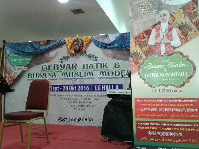 Pada tanggal 21 Oktober 2016 lalu, saya berkesempatan menyinggahi lokasi tersebut dan kala itu ada hiburan musik serta pagelaran fashion show perwakilan produk dari stand yang ada di sana. Di pandu artis ibu kota, Shezi Idris acara yang berlangsung kurang lebih 2 jam itu memperkenalkan busana yang menarik dan di peragakan oleh beberapa model.