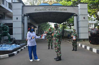 Dalam kunjungannya Ny. Martha Didong didampingi Ny. Tri Basuki dan Ny. Heru Koko membagikan masker dari ibu Ketua Daerah Jalasenastri Armada I kepada seluruh Prajurit dan ASN di Komplek Satuan Koarmada I Pondok Dayung Jakarta Utara dalam rangka mendukung program pemerintah dalam upaya pencegahan penularan pandemi Virus Corona Covid-19.