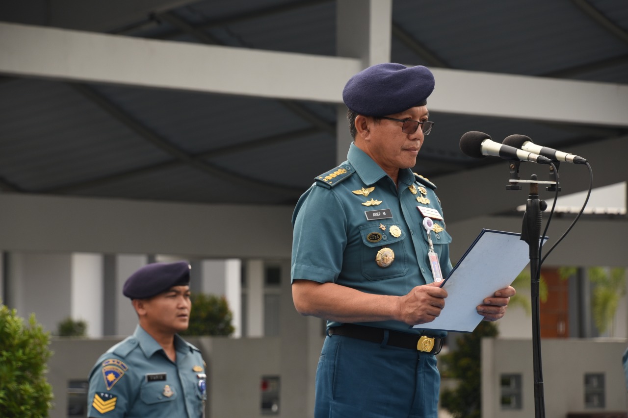 Jakarta, 13 Desember 2019 - Satya Wira Jala Dharma. Prajurit dan PNS Komando Lintas Laut Militer (Kolinlamil) mengikuti upacara peringatan Hari Nusantara 2019 di Lapangan Mulyono Silam, Mako Kolinlamil, Jakarta, Jumat (13/12). Bertindak sebagai inspektur upacara Inspektur Kolinlamil (Irkolinlamil) Kolonel Laut (S) Arief Muchtarom, S.E., M.Si (Han). Sedangkan komandan upacara Mayor Laut (P) Uji Agus Nugroho yang sehari-hari berdinas di Staf Potensi Maritim (Spotmar) Kolinlamil.