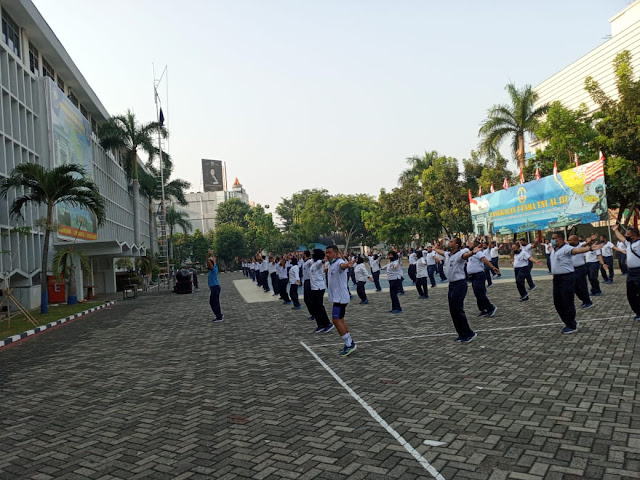 Prajurit Lantamal III berkumpul dan beramai-ramai olah raga senam jantung sehat, nampak hadir Komandan Pangkalan Utama Angkatan Laut III (Danlantamal III) Brigjen TNI Hermanto, S.E., M.M., di Lapangan apel Mako Lantamal III, Jalan Gunung Sahari No. 2 Ancol Jakarta utara, Jumat (7/8/2020).