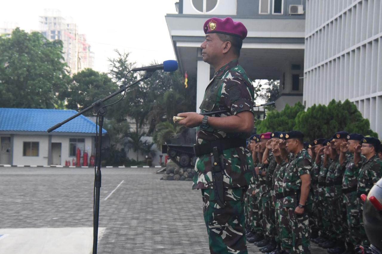 Komandan Pangkalan Utama TNI AL (Danlantamal) III Brigadir Jenderal TNI (Mar) Hermanto, S.E., M.M., pimpin Apel Satgas Siaga Banjir, Pengamanan Natal 2019 dan Tahun Baru 2020 di Lapangan Apel Mako Lantamal III, Jalan Gunung Sahari Raya, Kamis (19/12/2019).
