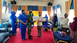 Komandan Pangkalan TNI Angkatan Laut (Danlanal) Bengkulu Letkol Laut (P) Yustus Nasarius Rossi bersama Ketua Cabang 4 Jalasenastri Koorcab II DJA I Ny. Kiki Yustus beserta Pengurus Jalasenastri, menyerahkan bantuan sembako kepada Warakawuri dan PHL di lingkungan Lanal Bengkulu berlangsung di Mako Lanal Bengkulu, Jalan RE Martadinata No.10 Kota Bengkulu, Jumat (15/5/2020).