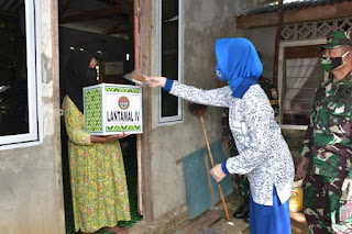 Komandan Pangkalan Utama TNI Angkatan Laut (Danlantamal) IV Tanjungpinang Laksamana Pertama TNI Arsyad Abdullah, S.E., M.A.P., didampingi Ketua Koordinator Cabang IV Daerah Jalasenastri Armada I (Ketua Korcab IV DJA I) Ny. Musyarafah Ridwan, membagikan paket sembako kepada masyarakat kurang mampu dan terdampak Covid-19 di Desa Tanjung Lanjut Kelurahan Kampung Bugis Tanjungpinang Kepri, Jumat (08/5/2020).