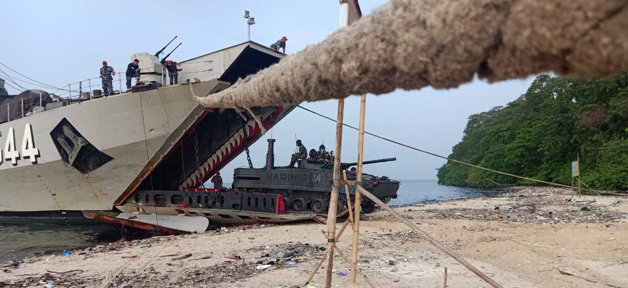 Dalam rangka meningkatkan profesionalisme prajurit, Satuan Kapal Amfibi (Satfib) Koarmada I menggelar Latihan Embarkasi Debarkasi dan Latihan Gerakan Kapal ke Pantai bertempat di Perairan Pulau Bokor, Minggu (22/12/2019).