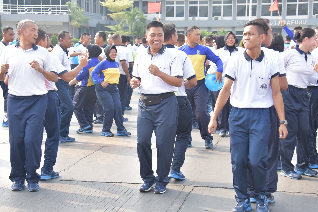 Jakarta, Satya Wira Jala Dharma. Komando Lintas Laut Militer menggelar Olahraga Bersama dalam rangka memperingati hari Ulang Tahun (HUT) ke-48 Korps Pegawai Negeri (Korpri) tahun 2019 yang digelar di Lapangan Mulyono Silam, Mako Kolinlamil, Selasa (10/12).