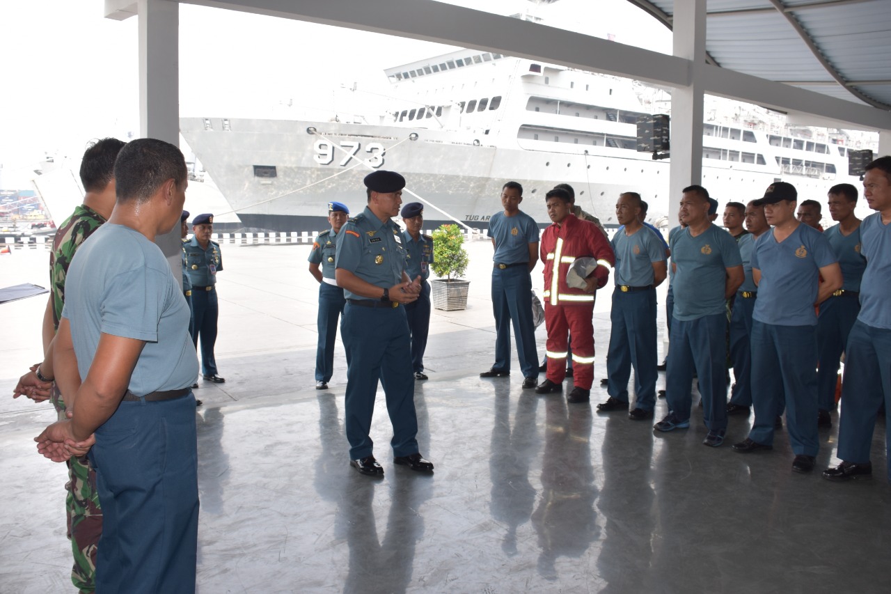 Jakarta, 11 Desember 2019 - Satya Wira Jala Dharma. Prajurit Komando Lintas Laut Militer (Kolinlamil) melaksanakan latihan penanggulangan bahaya kebakaran dengan menggunakan Alat Pemadam Api Ringan (APAR) berjenis CO2 dan busa serta hydrant (air bertekanan tinggi) di lapangan Mulyono Silam, Dermaga Kolinlamil, Tanjung Priok, Jakarta Utara, Rabu (11/12).