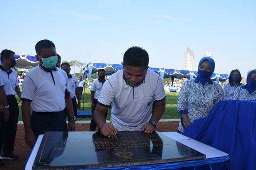 Pangkoarmada I Laksamana Muda TNI Muhammad Ali, S.E., M.M., meresmikan Stadion Sepak Bola dan pemberian nama Gedung Utama Mako, dan Gedung Puslan Kolat Koarmada I, Jumat (29/5/2020).