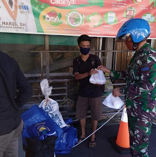 Selain menyediakan dapur umum, Lanal Tarempa juga membagikan bantuan sosial berupa sembako kepada masyarakat dengan cara mendatangi rumah-rumah warga yang dianggap berhak menerima.