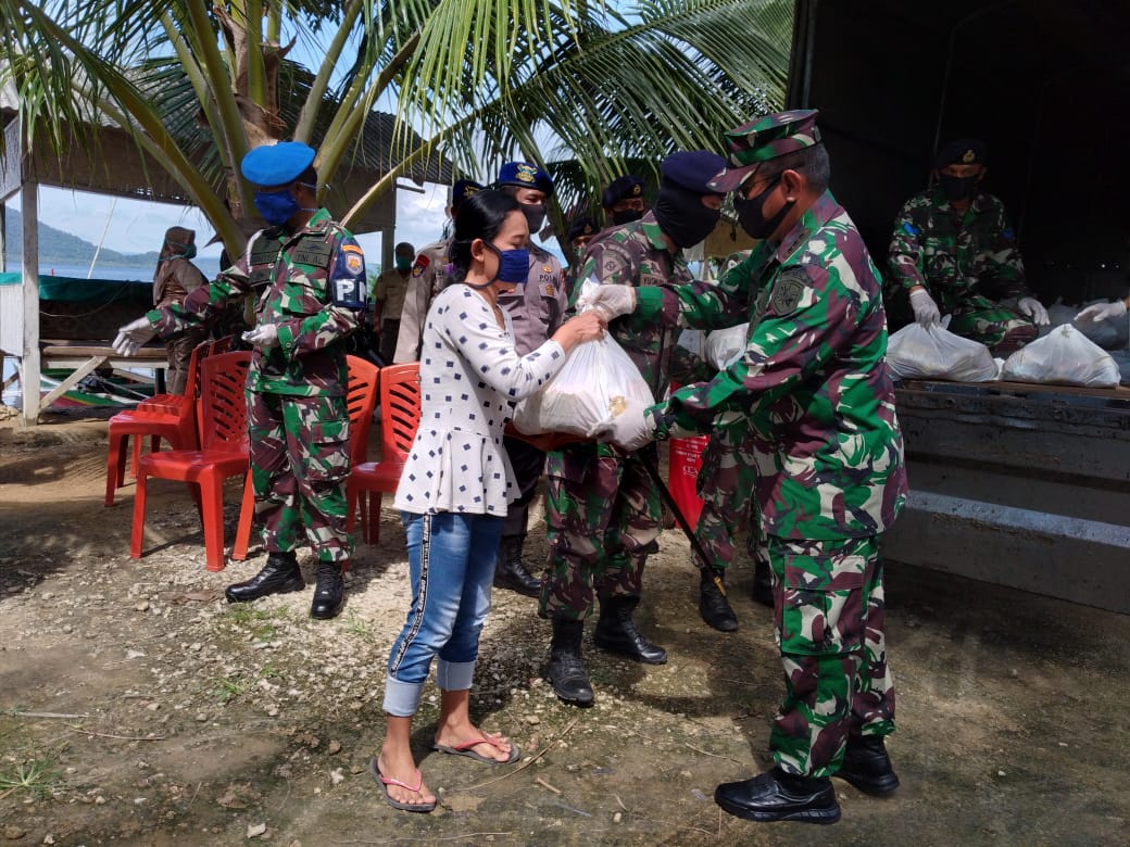 Sebagai wujud kepedulian kepada terdampak Covid-19, Pangkalan Angkatan Laut Lampung melakukan aksi sosial dengan membagikan bantuan Sembako kepada warga yang terdampak Covid-19 di wilayah kerja Lanal Lampung, Senin (4/5).