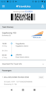 Pastinya first, Melvi cari tiket kereta ke Yogya, dan harga tiket yang mehong pun mulai kebayang, karena ini tanggal udah dekat-dekat lebaran, tapi Mel coba aja cari-cari, dan alhamdulillah dapat tiket yang harganya masih normal, dan dapat juga yang harga murmer, ini dia tiketnya