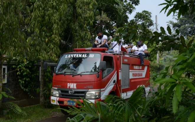 Jakarta, 20 April 2020,- Kadiskes Lantamal III Kolonel Laut (K) Drg. Agung May Setiana pimpin kegiatan penyemprotan disinfektan di perumahan TNI Angkatan Laut TWP Jonggol dan Perumahan Cibarusa dalam rangka pencegahan dan memutus mata rantai virus covid-19, Jl. Sukamanah Jonggol Bogor Jawa Barat, Senin (20/04).