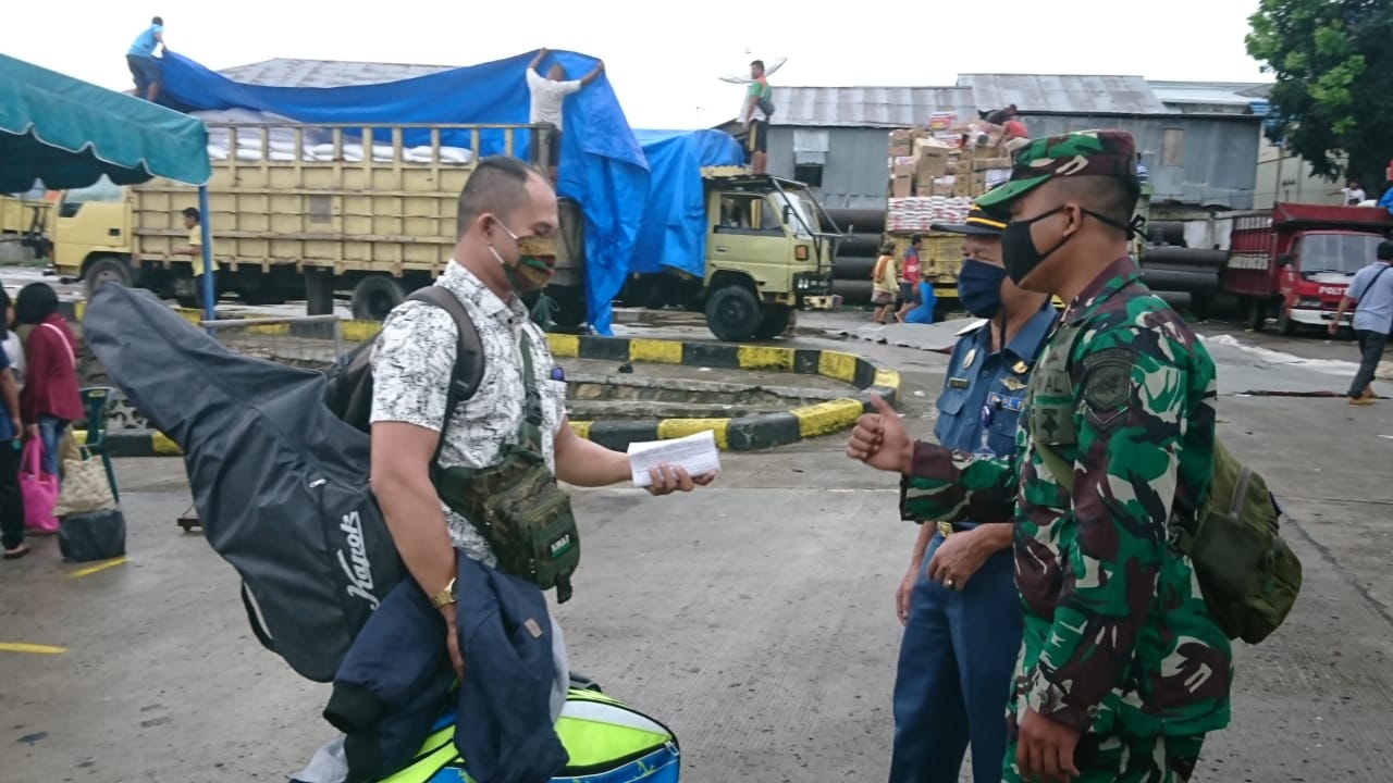 Untuk memutus mata rantai penyebaran virus covid-19 di Wilayah Kota Gunung Sitoli, Personel Posal Gunung Sitoli Lanal Niad yang tergabung Satgas Pencegahan Penyebaran Virus Covid-19 melaksanakan tes rapid terhadap penumpang di Area Pelabuhan Angin Gunung Sitoli, Sabtu (2/5/2020).