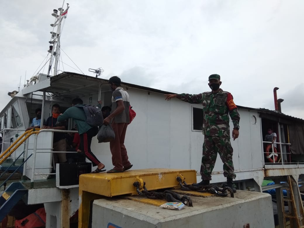 Pos Angkatan Laut (Posal) Muntok Jajaran Lanal Bangka Belitung bersama Tim Satgas Angkutan Laut (Angla) Covid-19 dan Gugus Tugas Percepatan Penanganan Covid-19 Kabupaten Bangka Barat kembali mengamankan penumpang gelap di Perairan Muntok, Kabupaten Bangka Barat, Jumat (5/6/2020).