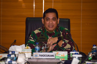 Jakarta, 9 Juni 2020 -- Satya Wira Jala Dharma, Setelah menyampaikan entry briefing usai menerima amanah jabatan Panglima Kolinlamil (3/6), Laksma TNI Abdul Rasyid K, S.E., M.M. memimpin Rapat Staf dan Komando (Rasko) yang berlangsung di Mako Kolinlamil, Tanjung Priok, Jakarta Utara, Selasa (9/6).