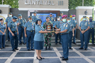 Jakarta - Misi kemanusian yang diemban Satuan Tugas (Satgas) Covid-19 Lantamal III yang di pimpin Kolonel Laut (P) Hary Wijajanto di wilayah Jabodetabek, guna membantu mencegah dan memutus mata rantai Pandemi Covid-19 mendapat apresiasi dari Kadiswatpersal Laksamana Pertama TNI drg. R.A.Nora Lelyana, M.H.Kes., F.I.C.D Mako Lantamal III Jakarta. Senin (30/03/20).