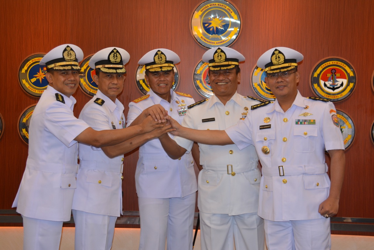 Panglima Komando Armada (Pangkoarmada) I memimpin upacara serah terima jabatan (Sertijab) Asisten Potensi Maritim (Aspotmar) Pangkoarmada I dan Kepala Dinas Informasi dan Pengolahan Data (Kadisinfolahta) Koarmada I, di Ruang Matjan Kumbang Koarmada I, Senin (23/12/2019).