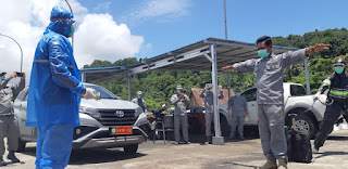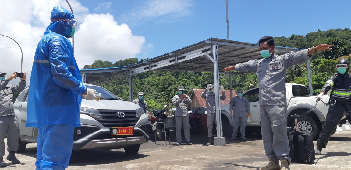 Manado, Selasa 7 April 2020 (Humas Bakamla RI/Indonesian Coast Guard) - Kamla Zona Maritim Tengah melaksanakan simulasi karantina terhadap Anak Buah Kapal (ABK) yang kembali setelah melaksanakan perjalanan dinas luar dan masuk dalam kategori zona merah COVID-19. Simulasi ini digelar di pangkalan Armada Kapal Patroli Serei, Minahasa Utara, Sulawesi Utara, kemarin.