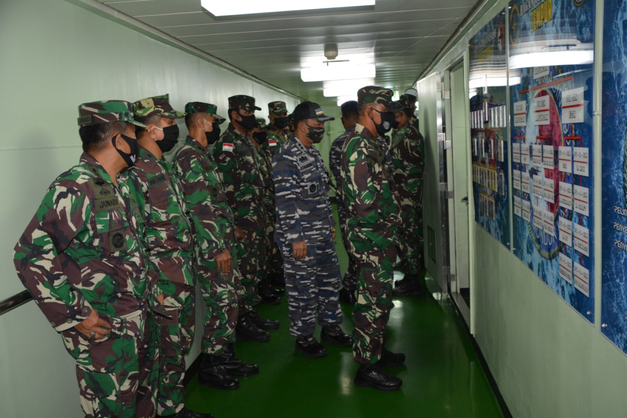 Setelah bertukar pengalaman dan menikmati jamuan KRI, Komandan Lantamal X meninjau beberapa ruangan kapal mulai anjungan hingga tempat istirahat para prajurit dan geladak helly yang dimanfaatkan oleh prajurit untuk pembinaan fisik selama lintas laut.
