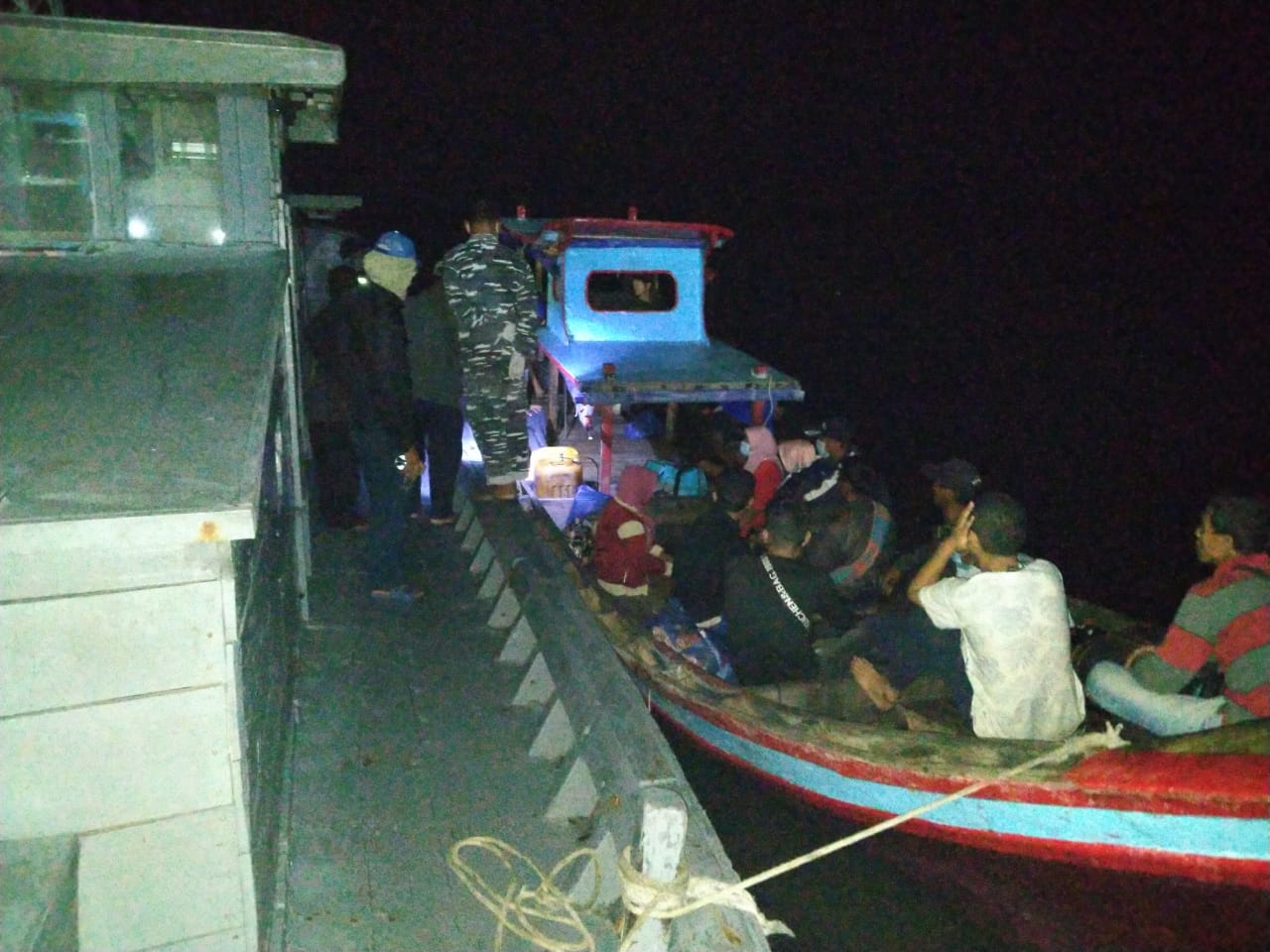 Tim (Fleet One Quick Response) F1QR Lanal Tanjung Balai Asahan, Lantamal I, Koarmada I menangkap KM tanpa nama dengan 2 ABK dengan 20 orang penumpanng warga Negara Indonesia dari Negara Malaysia tujuan kembali ke daerah asal melalui jalur tidak resmi di Perairan Sarang Olang, Kabupaten Asahan, Sumatera Utara, Minggu (5/4/2020).