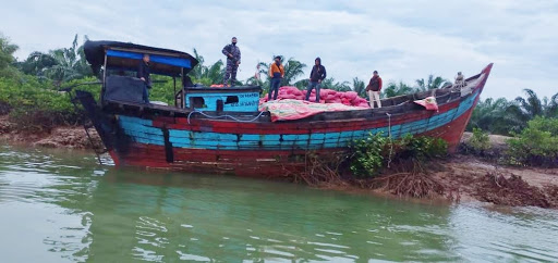 "Saat melaksanakan patroli, Tim F1QR mendapatkan visual kapal dengan muatan berat menuju Alur Air Masin, selanjutnya tim memberi sinyal dengan cahaya berusaha menghentikan kapal namun kapal tersebut merespon dengan menambah kecepatan sampai dengan kapal mengeluarkan asap tebal. Tim memutuskan melakukan pengejaran dan memberikan peringatan supaya kapal berhenti. Sebelum bisa menjangkau kapal terduga penyelundup, tampak dari kejauhan terlihat beberapa ABK melompat ke boat pemandu yang ada disamping kapal mereka dan langsung memacu kecepatan berusaha untuk melarikan diri. Tidak lama, Tim bisa mendekati dan mendapati kapal bermuatan yang ditinggalkan dalam posisi kandas karena menabrak pohon bakau," pungkasnya.