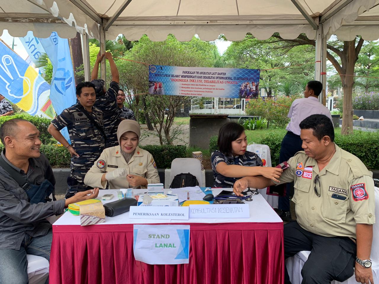 Staf Potensi Maritim dan Balai Pengobatan Lanal Banten mendukung kegiatan Hari Disabilitas Internasional Tahun 2019 yang jatuh pada tanggal 3 Desember 2019 tingkat Kota Cilegon yang diselenggarakan oleh Dinas Pemberdayaan Perempuan dan Perlindungan Anak dan Keluarga Berencana (DP3KB) (12/12/2019).